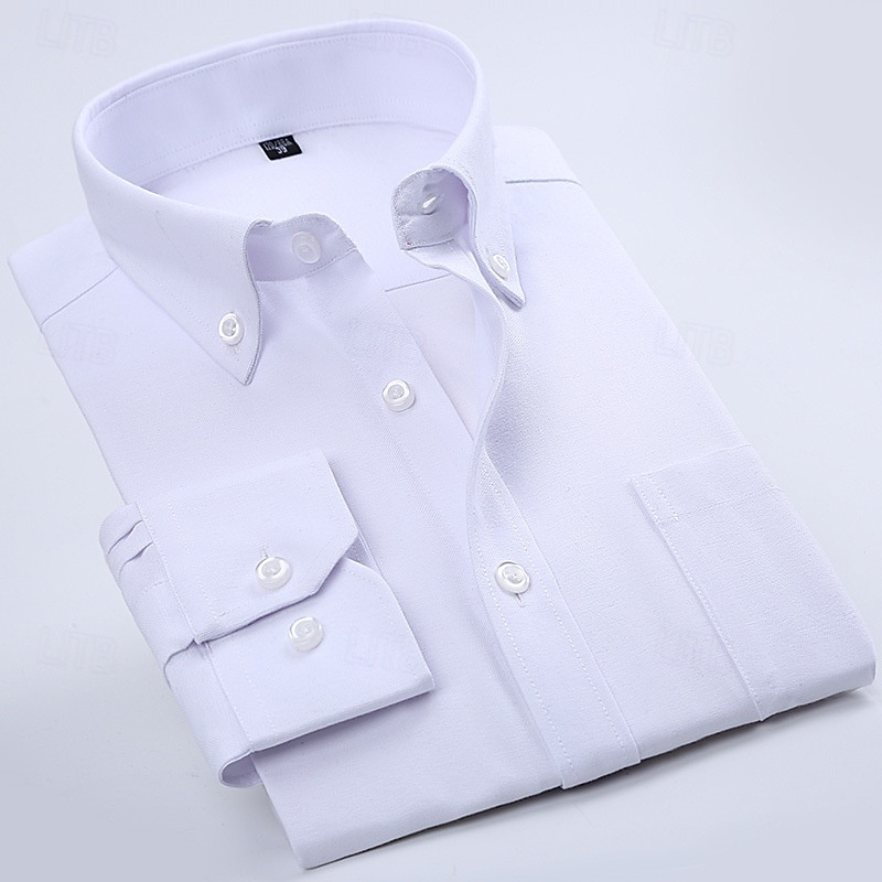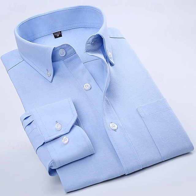 More information about Men's Dress Shirt Button Down Shirt Oxford Shirt Wrinkle Resistant Plain Wedding Work Light Blue White Dark Blue Long Sleeve Collar Summer Spring Clothing Apparel