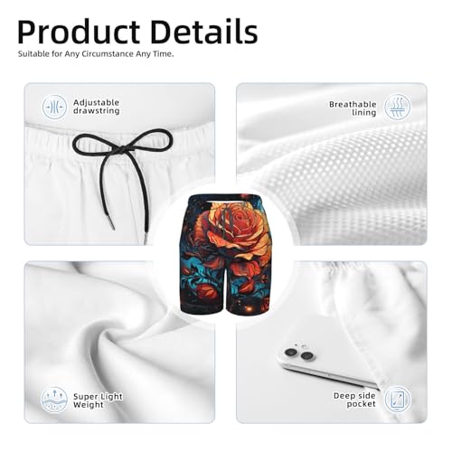 More information about Boys Swim Trunks Beach Shorts Summer Surf Kids Youth Bathing Suits, Rose On Fire Burning Art Moon