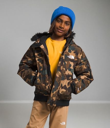 • The North Face Kids Gotham Jacket is the perfect solution to a cold weather adventure. This jacket comes with an attached hood and long sleeves. The solid and print fabric made with recycled polyester and heather fabric made with a recycled polyeste