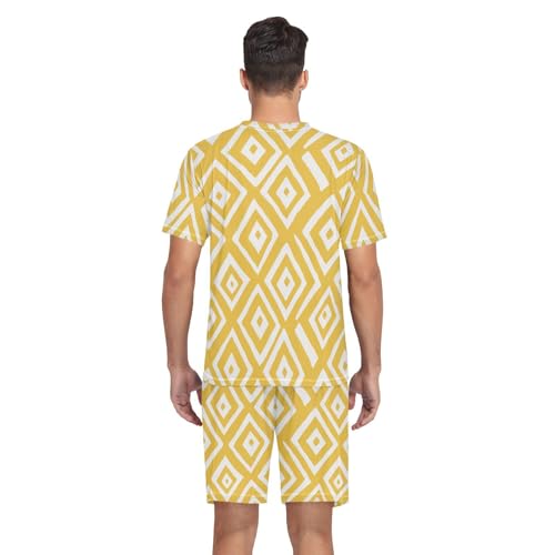 More information about Yellow Geometry Men’s Pajama Sets 2 Piece Short Sleeve Sleepwear with Printed Design