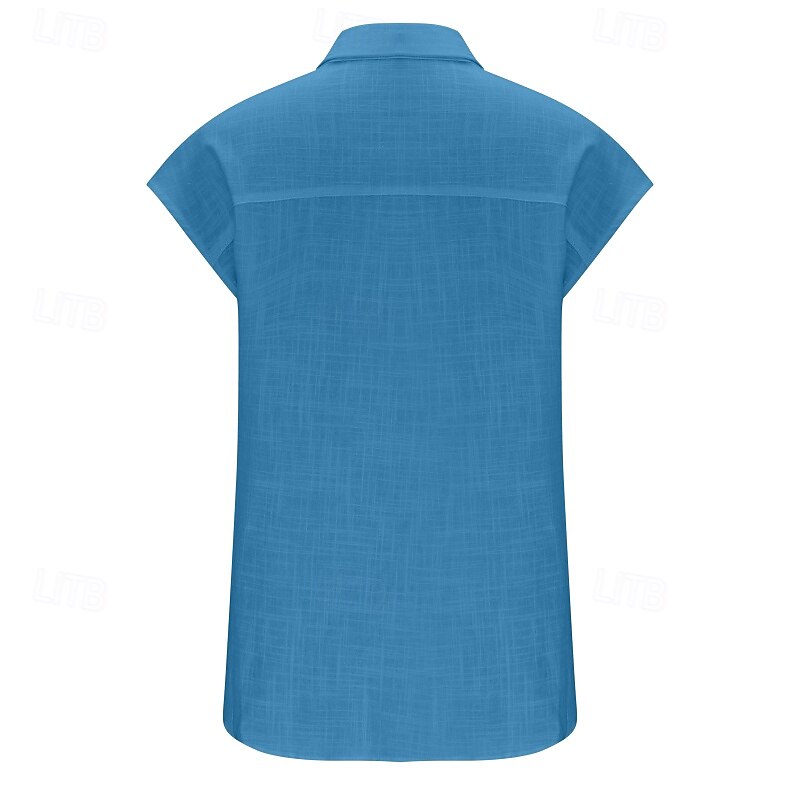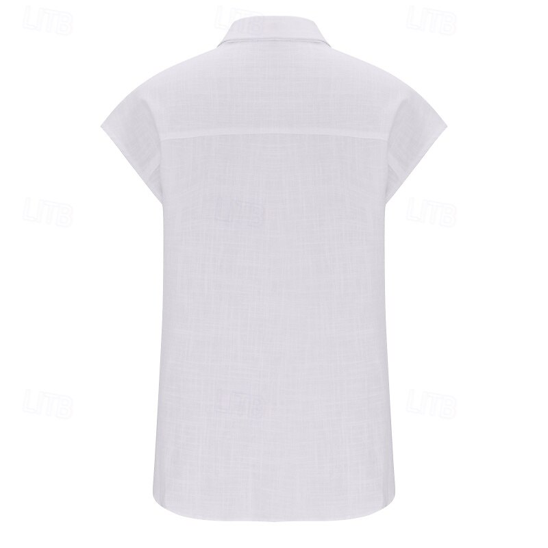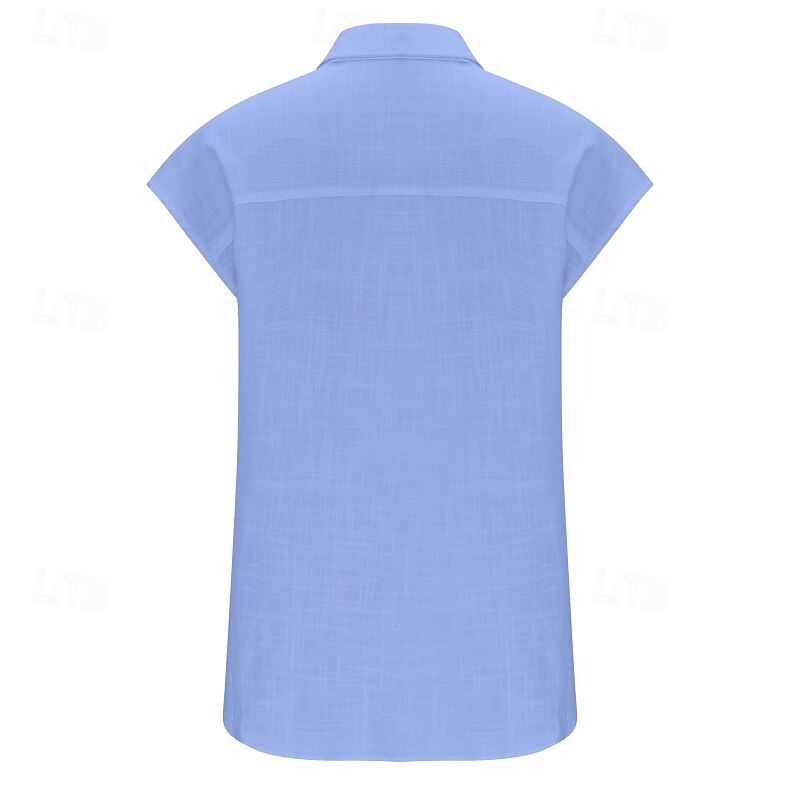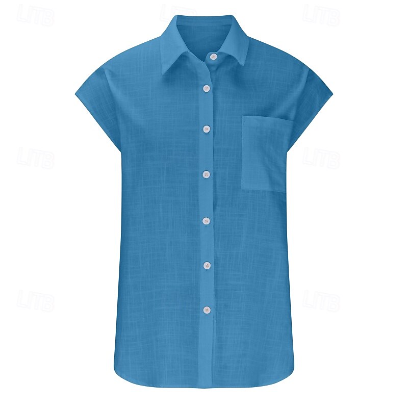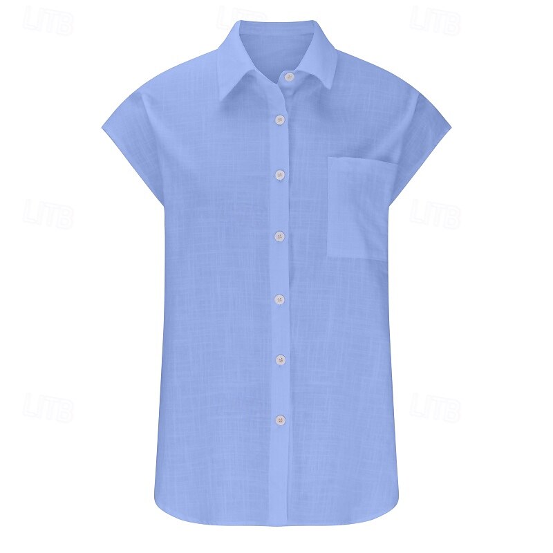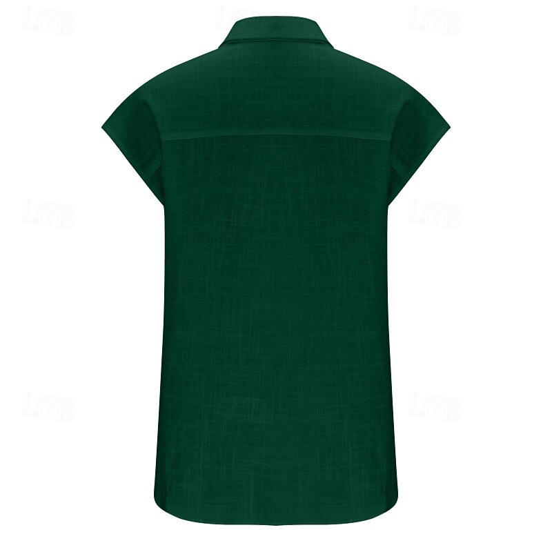 More information about Women's Shirt Cotton Linen Shirts Button Up Blouse Plain Basic Casual Short Sleeve Shirt Collar Regular Tops Daily Holiday Going out Buttons Pocket Grass Green White Green Light Blue Summer