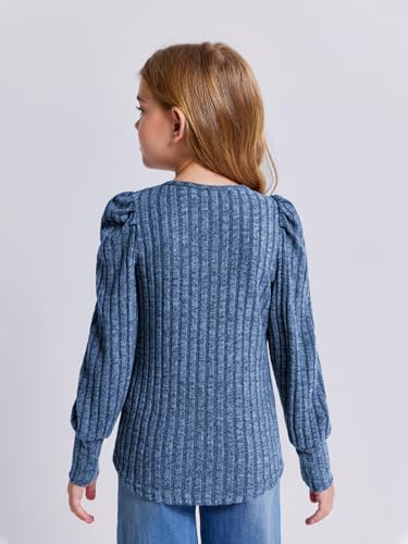 Haloumoning Girls Puff Long Sleeve Shirts Kids Fashion Ribbed Knit Tops Blouse 5-14 Years 5