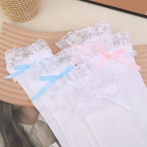 White Lace Ribbon Bow Knee High Sock,Women Fashion Bowknot Calf Socks,Sweet Cute Solid Color Stocking 3