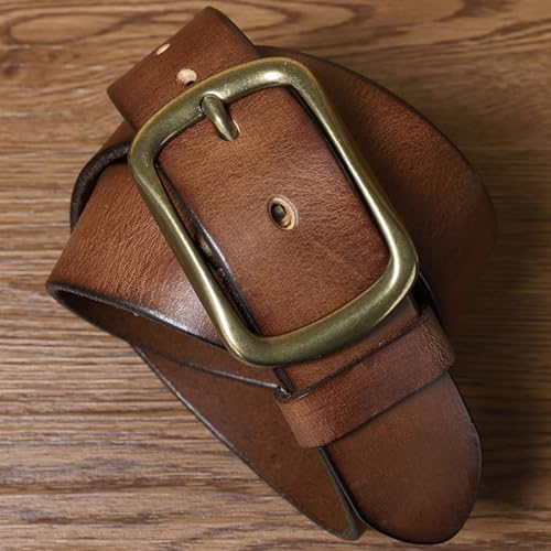 More information about Men Women 38mm Wide Genuine Cowhide Leather Belt Casual Jean Handmade Waist Strap with Heavy Duty Bronze Metal Buckle