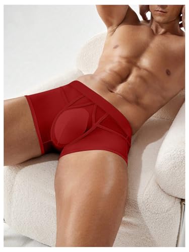 • Feature: Mesh, see through, mid rise, solid color, boxer briefs for men