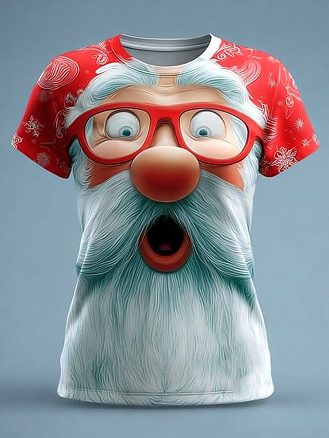 More information about Christmas Women's T Shirt Graphic Santa Claus Vintage Stylish Classic Short Sleeve Crew Neck Regular Tops Daily Print White Red Blue Dark Green Green Fall Winter
