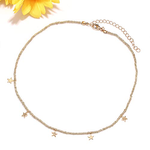 • ❤MULTILAYER NECKLACE❤:Fun and vibrant, this layered beaded necklace will be your new staple necklace, the Surf choker has three layered one is African Vinyl disc beads necklace,the second is rainbow seed beaded choke with a pearl in the central,the third layered is Copper beads choker with star pendant. Each necklace can be worn alone make a regal statement.