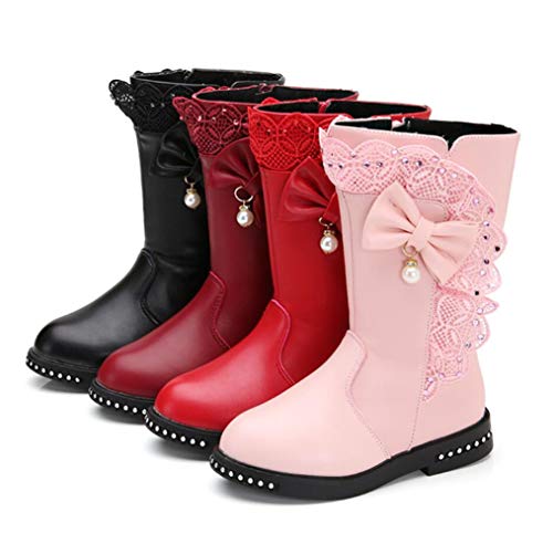 More information about Kids Girl's Waterproof Lace Bowknot Side Zipper Fur Lined Tall Winter Riding Boots Fashion Warm Bootie