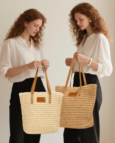 Personalized Girls Beach Bag for Trip, Custom Hand-woven straw Tote Bag for Women, Summer Hobo Bag with Laser Name, Foldable Shoulder Bags for Swimming Pools 1