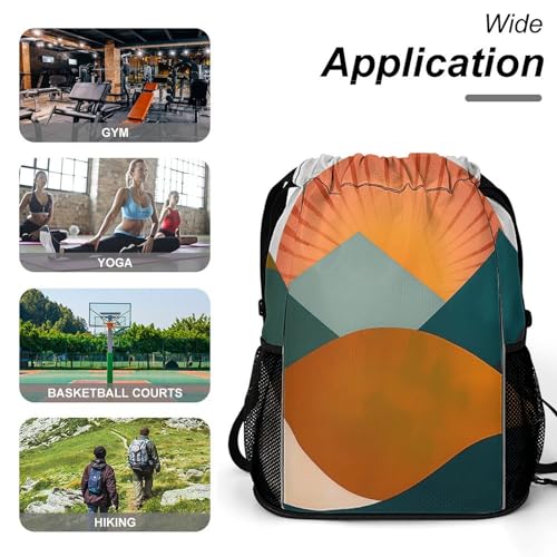 HOT ! Boho Mountain Sun Drawstring Backpack Drawstring Bags Drawstring Sport Bag Sports Gym Bag with Pockets for Women Men