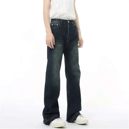 HOT ! Men's Denim Pants Solid Color Slim Korean Flared Trousers Straight Leg Jeans