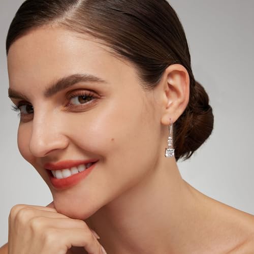 18K White Gold Plated Sterling Silver Asscher Cut Cubic Zirconia Dangle Earrings for Women Square CZ Diamond Drop Dangling Earrings for Women Mom 5