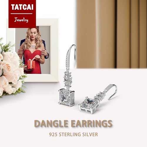 18K White Gold Plated Sterling Silver Asscher Cut Cubic Zirconia Dangle Earrings for Women Square CZ Diamond Drop Dangling Earrings for Women Mom 6