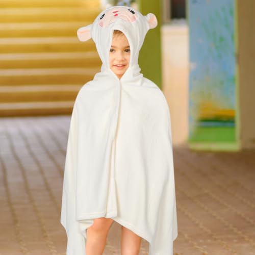 HOT ! Boy Hooded Bath Towel Robe Thick Fleece Boy Girl Bathrobe for Boy Girl Absorbent Indoor Towel for Bathing and Beach Cute Animal Design Alpaca