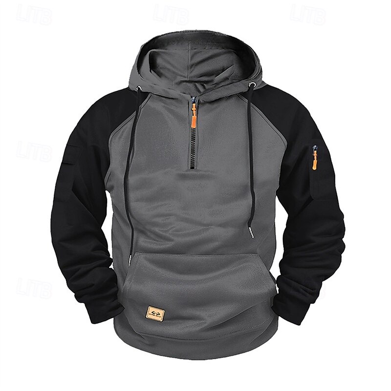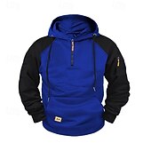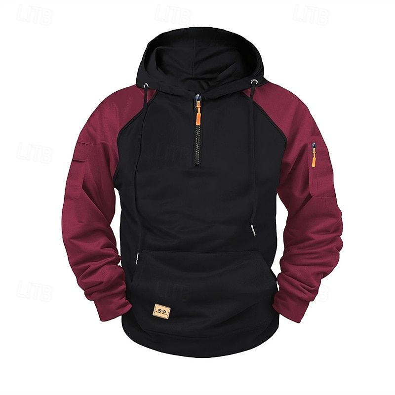 More information about Men's Hoodie Quarter Zip Hoodie Wine Royal Blue Camel Dark Gray Hooded Color Block Patchwork Pocket Sports & Outdoor Daily Holiday Polyester Streetwear Basic Casual Spring Fall Clothing Apparel