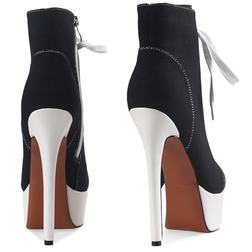 Women's Black Platform Ankle Boots Stiletto High Heel Short Boot Lace-Up Canvas Sneaker Booties Closed Round Toe Shoes with Side Zipper for Ladies Sexy Spring Fall Winter 6