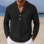 More information about Men's Shirt Linen Shirt Popover Shirt Summer Shirt Beach Wear Solid Color Vacation Street Black Blue Khaki Long Sleeve Collar Fall Spring & Summer Clothing Apparel Plain