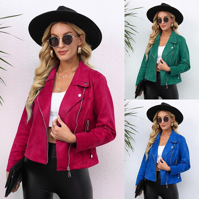 More information about Women's Faux Leather Jacket Suede Jacket Zip up Jacket Spring Casual Motor Biker Jacket Winter Heated Jacket