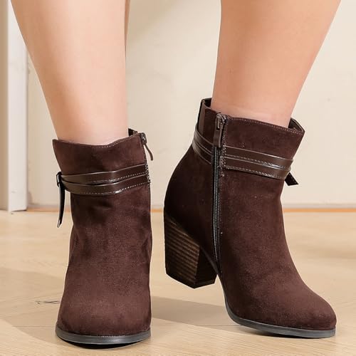 Luoika Women's Wide Width Ankle Boots, Chunky Heel Side Zipper Extra Wide Short Booties. 5