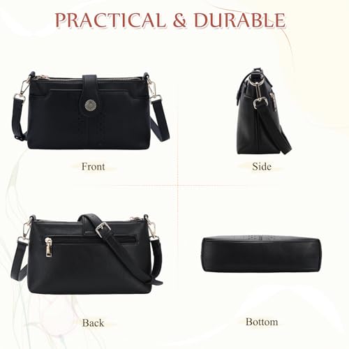 • ⭐Convenient and Well-Organized: The cross body phone bag is designed for convenience with three card slots in the main compartment, an easy-accessed front sleeve under the button, and a rear zipped pocket. These features ensure easy organization, quick access to essentials, and a hassle-free experience for the woman on the go.