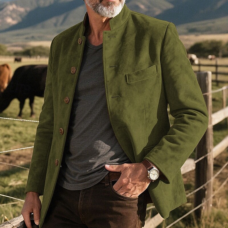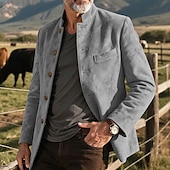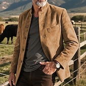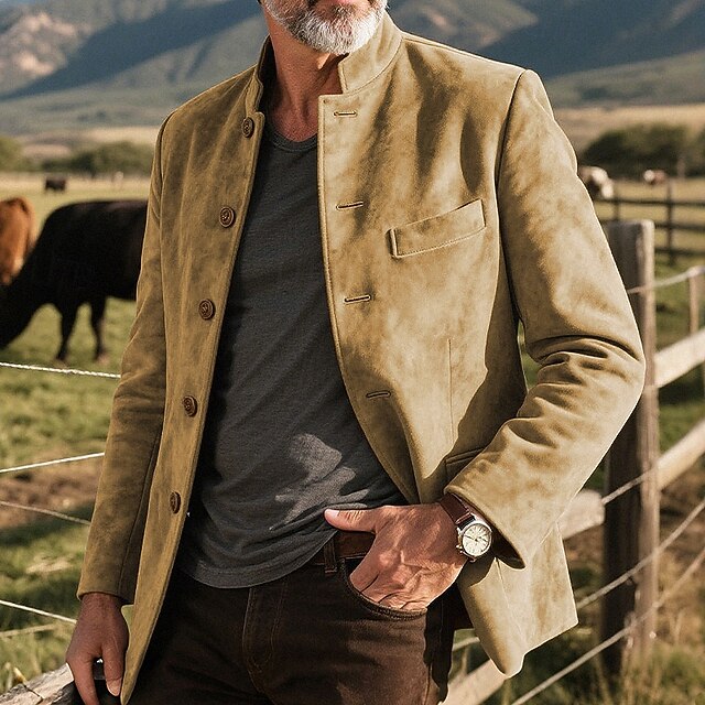 More information about Men's Casual Jacket Faux Suede Jacket Vacation Daily Pocket Spring Fall Plain Fashion Classic Stand Collar Regular Light Khaki Black Navy Blue Khaki Army Green Jacket