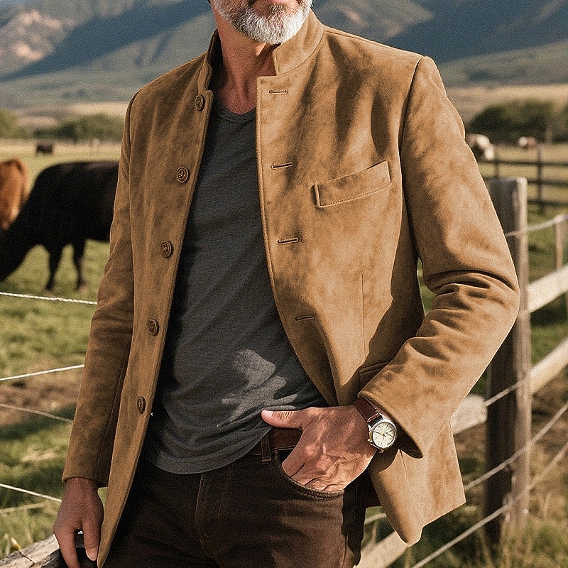 Men's Casual Jacket Faux Suede Jacket Vacation Daily Pocket Spring Fall Plain Fashion Classic Stand Collar Regular Light Khaki Black Navy Blue Khaki Army Green Jacket 1