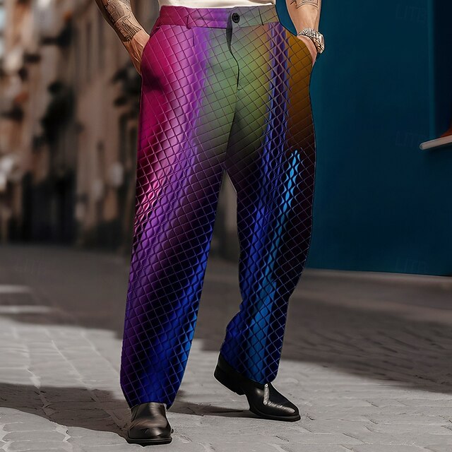 More information about Men's Geometric Dress Pants Mid Waist Business Casual Formal Dailywear Zipper Pocket Straight Leg Trousers Summer Spring Fall 3D Print Blue