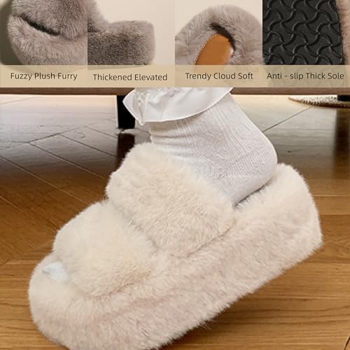 Women's Platform Slippers - Fuzzy Plush Furry, Trendy Cloud Soft, Thickened Elevated & Anti - slip Sole, Fashion Comfort for Daily Wear. 7