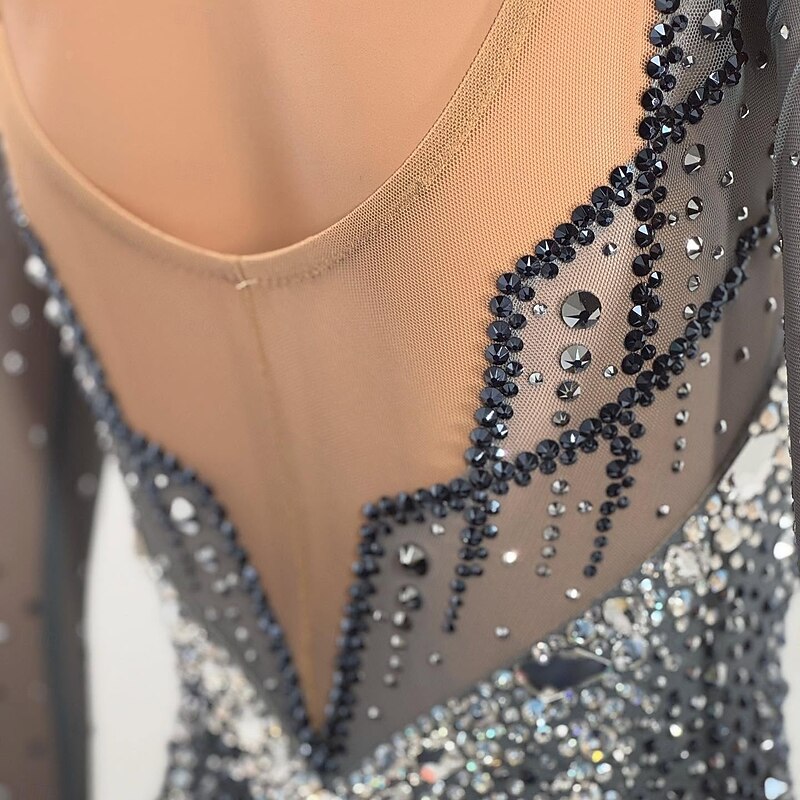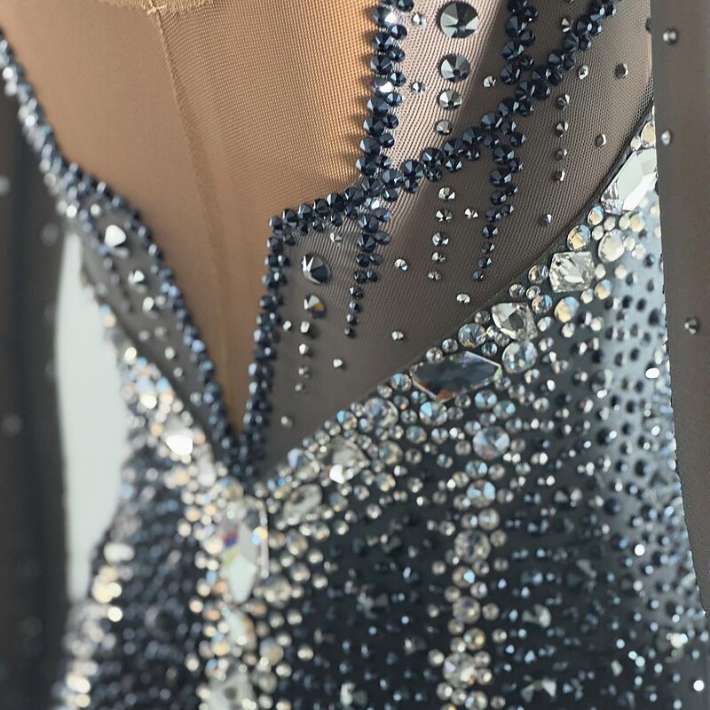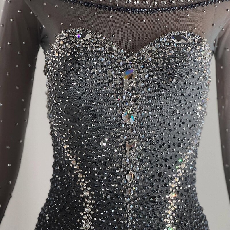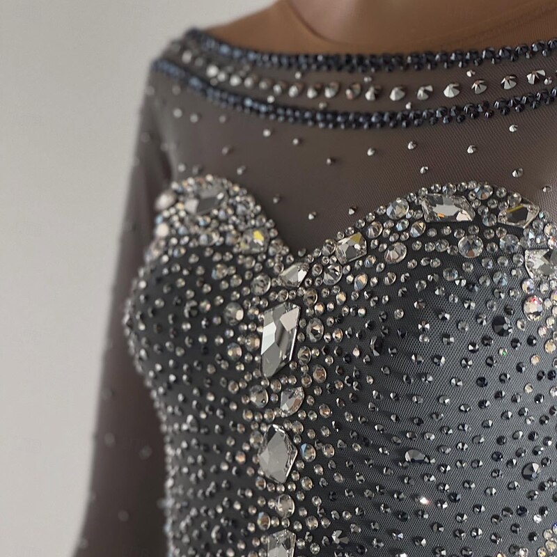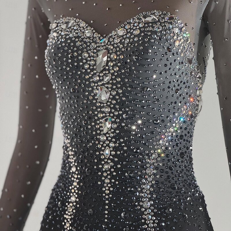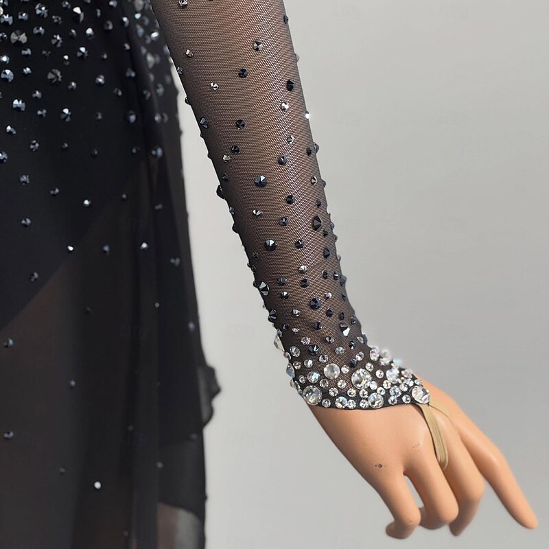 More information about Figure Skating Dress Women's Girls' Ice Skating Dress Black Patchwork Open Back Mesh High Elasticity Training Competition Skating Wear Classic Crystal / Rhinestone Long Sleeve Ice Skating Figure