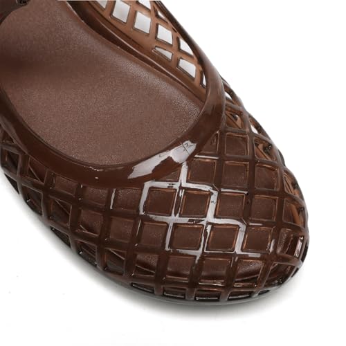 Clear Jelly Slide Sandals for Women Slip On Closed Round Toe Mesh Hollow Flat Mary Jane Mules Beach Jellies Comfortable Buckle Strap Slippers Shoes 6