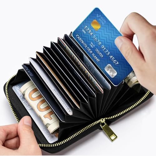 • 【Premium Material】- This zipper card holder is made of soft PU leather with a luxurious and textured feel. The zipper is reliable and glides smoothly, ensuring easy access to the content of the credit card holder wallet
