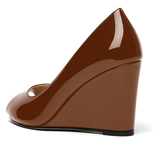 MOVINSTEPS Womens Slip On Work Patent Peep Toe Fashion Wedge High Heel Pumps Shoes 3.3 Inch 5