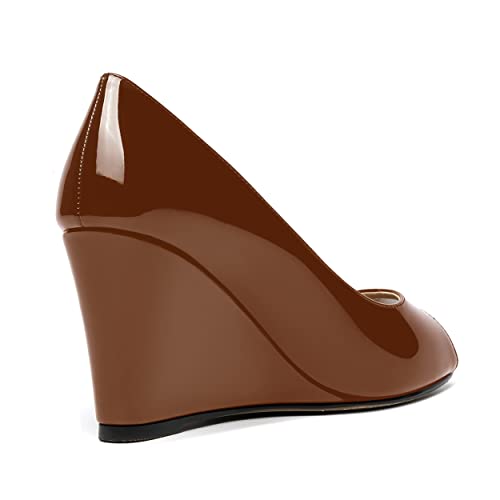 MOVINSTEPS Womens Slip On Work Patent Peep Toe Fashion Wedge High Heel Pumps Shoes 3.3 Inch 7