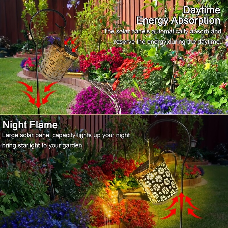 HOT ! Outdoor Solar Watering Can Lights - Hanging Kettle Pathway Lantern, Waterproof Metal Retro Lamp for Garden, Yard & Flower Bed Garland Decor