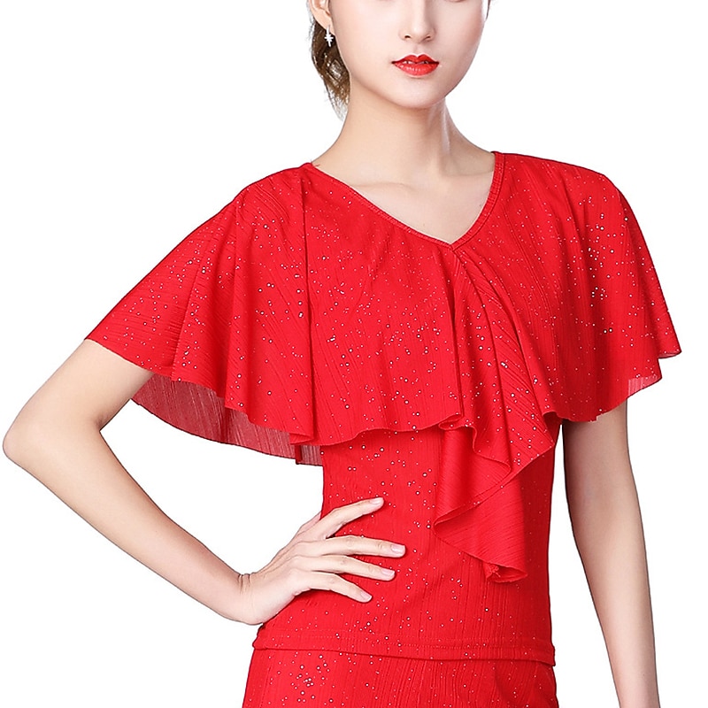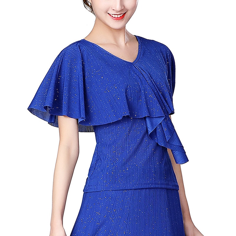 $43.99 - Latin Dance Ballroom Dance Top Ruffles Splicing Sequins Women's Performance Training Short Sleeve Spandex 2025. Shop for cheap Tops & Sets online? Buy at lightinthebox.com on sale today!