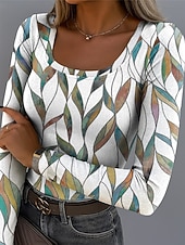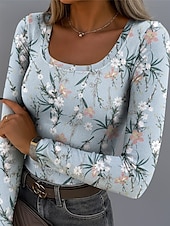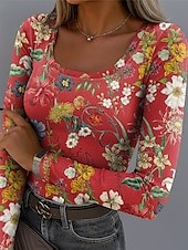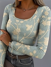 More information about Women's T Shirt Ribbed Graphic Square Neck Long Sleeve Casual Floral Elegant Vintage Regular Tops Daily Going out Weekend Print White Light Green Red Blue Purple Spring Fall