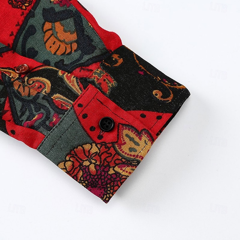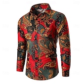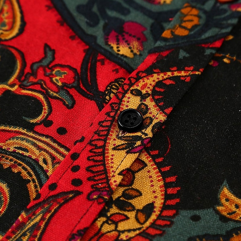 Highlights [Fabric] : Crafted from a premium cotton and cotton blend, this men's graphic shirt offers a comfortable and breathable feel, making it perfect for all-day wear. [Fit] : The shirt features a regular fit, combining style and comfort, suitable for both casual outings and semi-formal gatherings. Its long sleeves and classic collar present a vintage yet modern look. [Design Highlights] : Showcasing a bold, multicolor paisley print, this shirt is designed to stand out. The rich hues of red, green, and gold deliver an exotic and luxurious aesthetic, enhanced by its tailored appearance. [Occasions] : Ideal for casual occasions, this versatile shirt suits everything from weekend gatherings to more relaxed formal events. It can be dressed up with dress trousers or down with jeans for a chic, casual vibe. [Size Information] : Available in a range of sizes from S to XXL, ensuring a comfortable fit for various body types.
