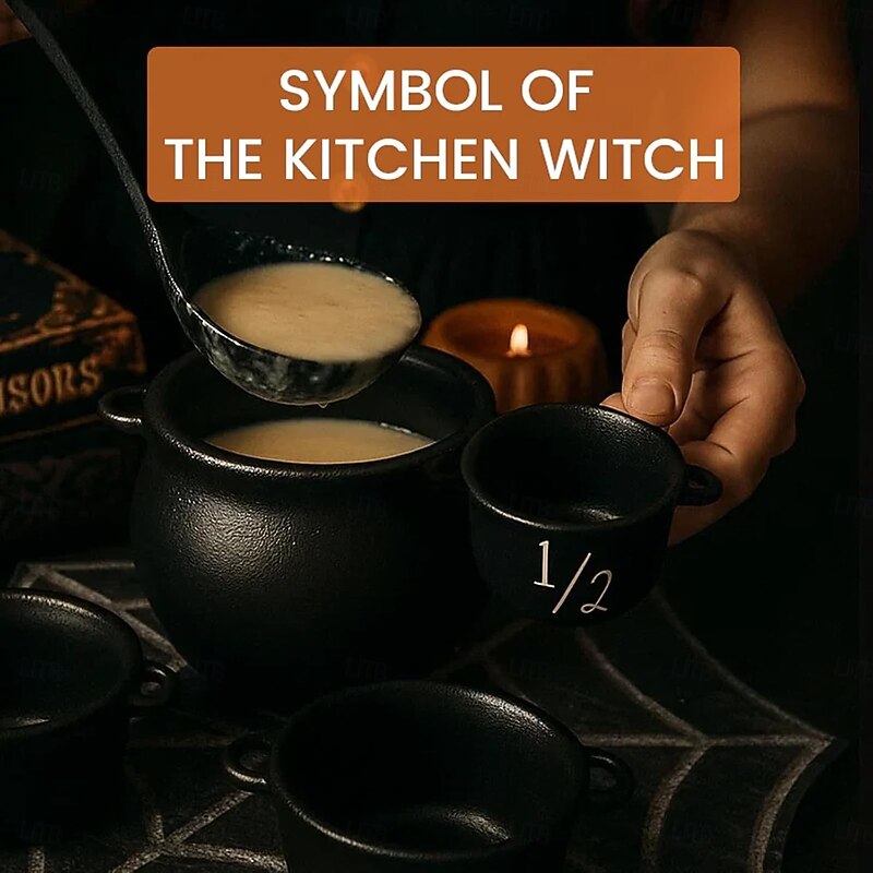 HOT ! Halloween Mini Witch Cauldron Set Metal Black Small Cauldron With Handle 1, 1/2, 1/3, and 1/4, Halloweens Pot Candy Holder for Halloween & Party Favors Decor