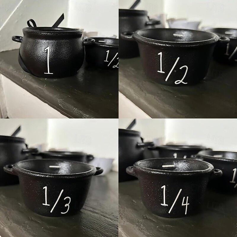 Halloween Mini Witch Cauldron Set Metal Black Small Cauldron With Handle 1, 1/2, 1/3, and 1/4, Halloweens Pot Candy Holder for Halloween & Party Favors Decor 6