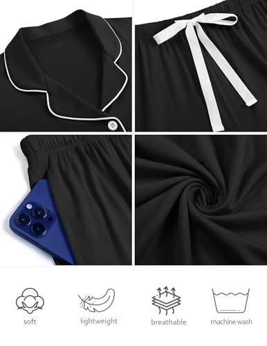 Fabric type: Modal (95% Viscose, 5% Elastane)Care instructions: Machine WashOrigin: ImportedJoin Prime Cancel anytime【Soft Pajamas for Women】 This women's pajama set is made of skin-friendly and comfortable modal 95% rayon and 5% spandex fabric, soft, lightweight, breathable, stretchy and comfortable. The lovely prints adds a touch of romantic atmosphere, feel happy even in your sleep【Perfect as a Gift Pajamas】Suitable for daily wear, sleep, breastfeeding, traveling, spa, bridal shower and so on. Great gift for birthday, Christmas, New Year, party favors, honeymoon holidays or other festivals or Anniversary. Whether you are looking for a Valentine's Day gift or want to prepare a special surprise for your bridal party, our women's pajama short set is ideal【Button Up Pajama Set】This 2-piece women's pajama set features a full-buttoned top for easy on and off. iconic notch collar top shirt follows the trend and side pockets on shorts add more practicality【FIT CLASSIC DESIGN】Adjustable Shorts with Drawstring: The pajama shorts come with drawstring elastic waist. Waistband is soft elastic, the drawstring has plenty of length, allowing for easy adjustment of the tightness for personalized comfort during relaxation【Wash Tips】Machine wash cold. Tumble low. No bleach. Dry flat. Cool iron if needed. Please refer to the SIZE CHART on the details page before ordering Perfect for everyday use. top-grade materials and excellent craftsmanship ensure long-lasting durability.