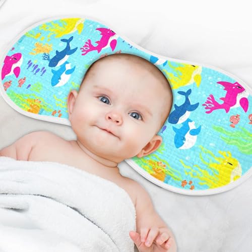 More information about 2 Pack Baby Burp Cloths, Soft Absorbent Burping Cloths for Babies, Cotton Milk Spit Up Rags, Large Size for Newborns, Baby Boys and Girls (Rainbow Shark Party)