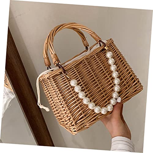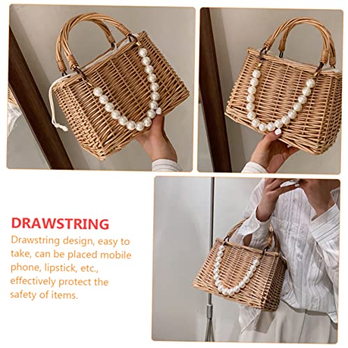 HOT ! Portable Pearl Straw Handbag with Drawstring Closure Lightweight Beach Tote Bag for Women Stylish Summer Rattan Purse with Spacious Opening Family and Friends