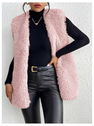 Verdusa Women's Fuzzy Faux Fur Sleeveless Vest Teddy Coats Open Front Plush Waistcoat Outerwear 6