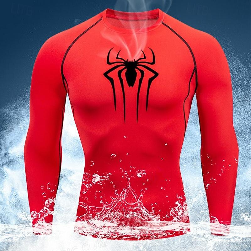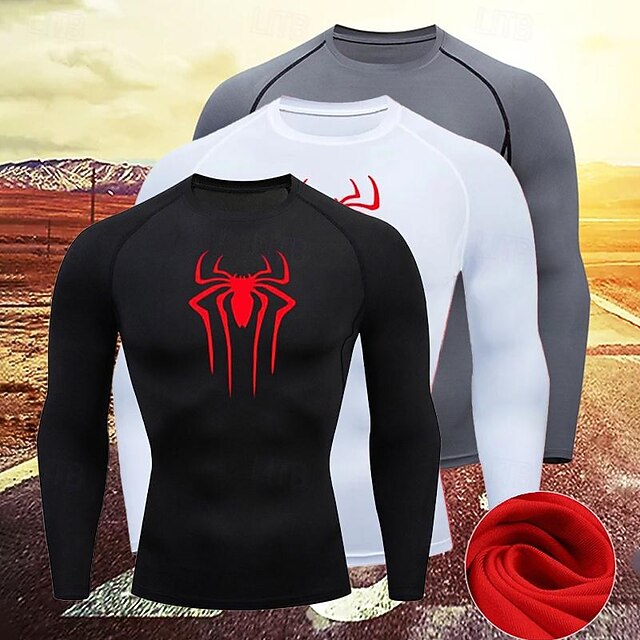 HOT ! Men's Compression Shirt Athletic Shirt Gym Shirt Fitness Shirt Long Sleeve Tee Tshirt Casual Athleisure Spiders Quick Dry Soft Breathable Gym Workout Walking Jogging Sportswear Activewear Black White