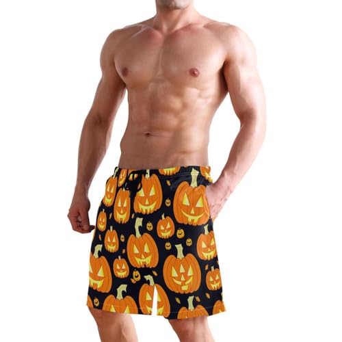 Large-Scale Pumpkin Halloween Men's Boy's Novelty Beach Shorts Swim Trunks Summer Quick Dry Bathing Suits S 6