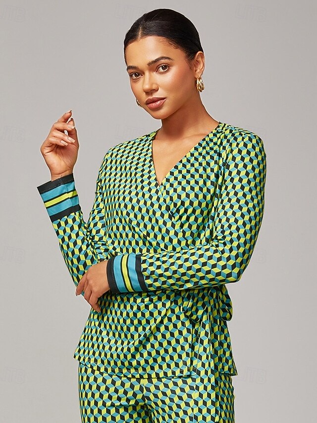 HOT ! Green 3D Geometric Stretchy Wrap Top
