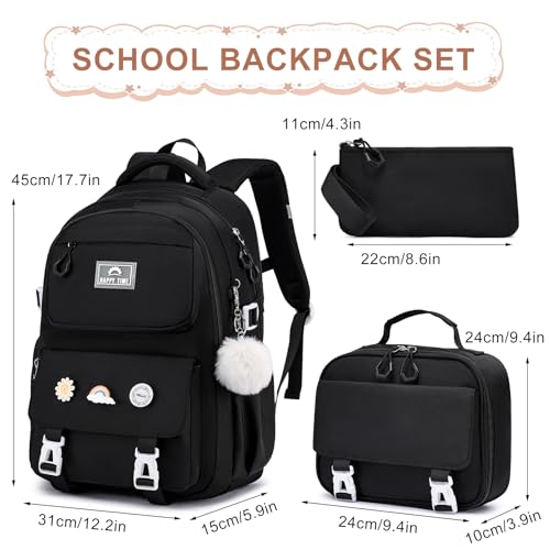 HOT ! MOMUVO School Backpack Set for Girls,3pcs Bookbag with Lunch Box Pencil Case Kids School Bag Set
