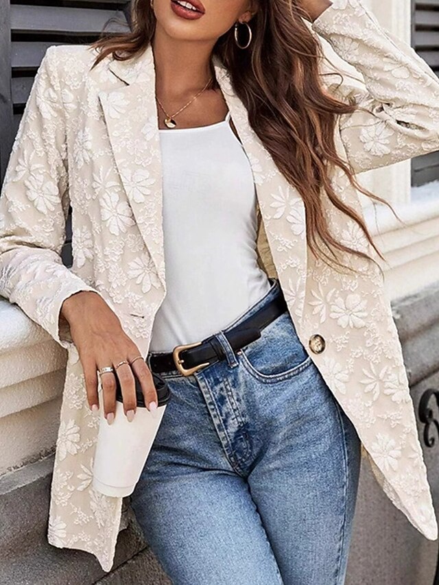 More information about Women's Blazer Comfortable Print Elegant Fashion Outdoor Flower Going out Casual Daily Weekend Cardigan Regular Lapel Regular Fit Long Sleeve Outerwear Khaki Spring Fall