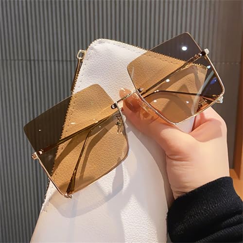 HOT ! helena Trendy Rimless Square Sunglasses Womens Big Oversized Semi-Rimless Metal Frame Champagne Sunglasses for Women