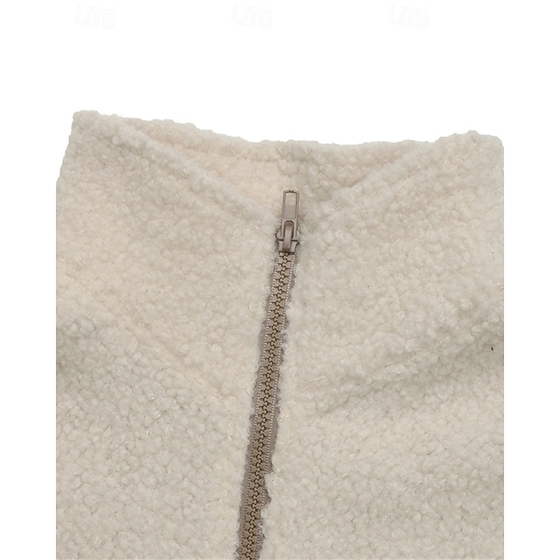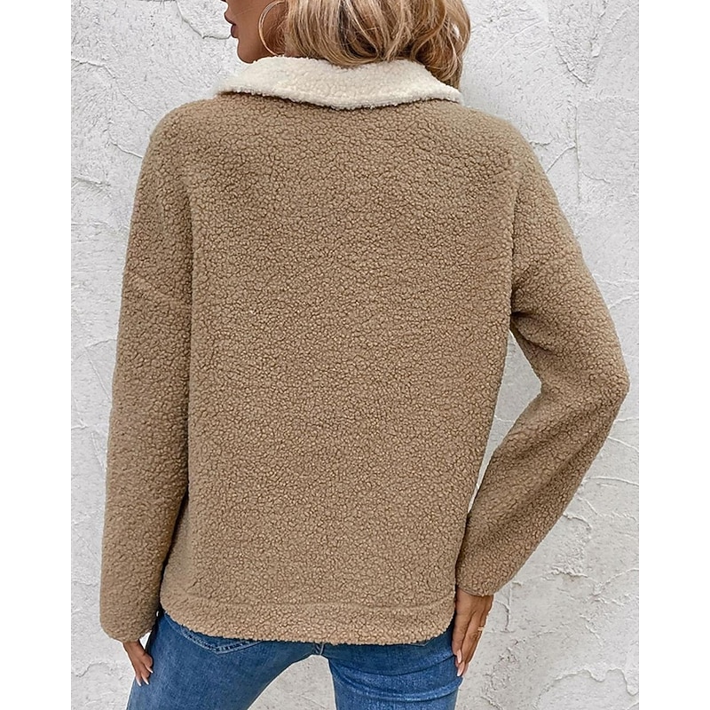 More information about Women's Sweatshirts Zip Up Sweatshirts Color Block Streetwear Casual Sherpa Fleece Long Sleeve High Neck Regular Tops Street Holiday Going out Half Zipper Quarter Zipper Quarter Zip Khaki Winter